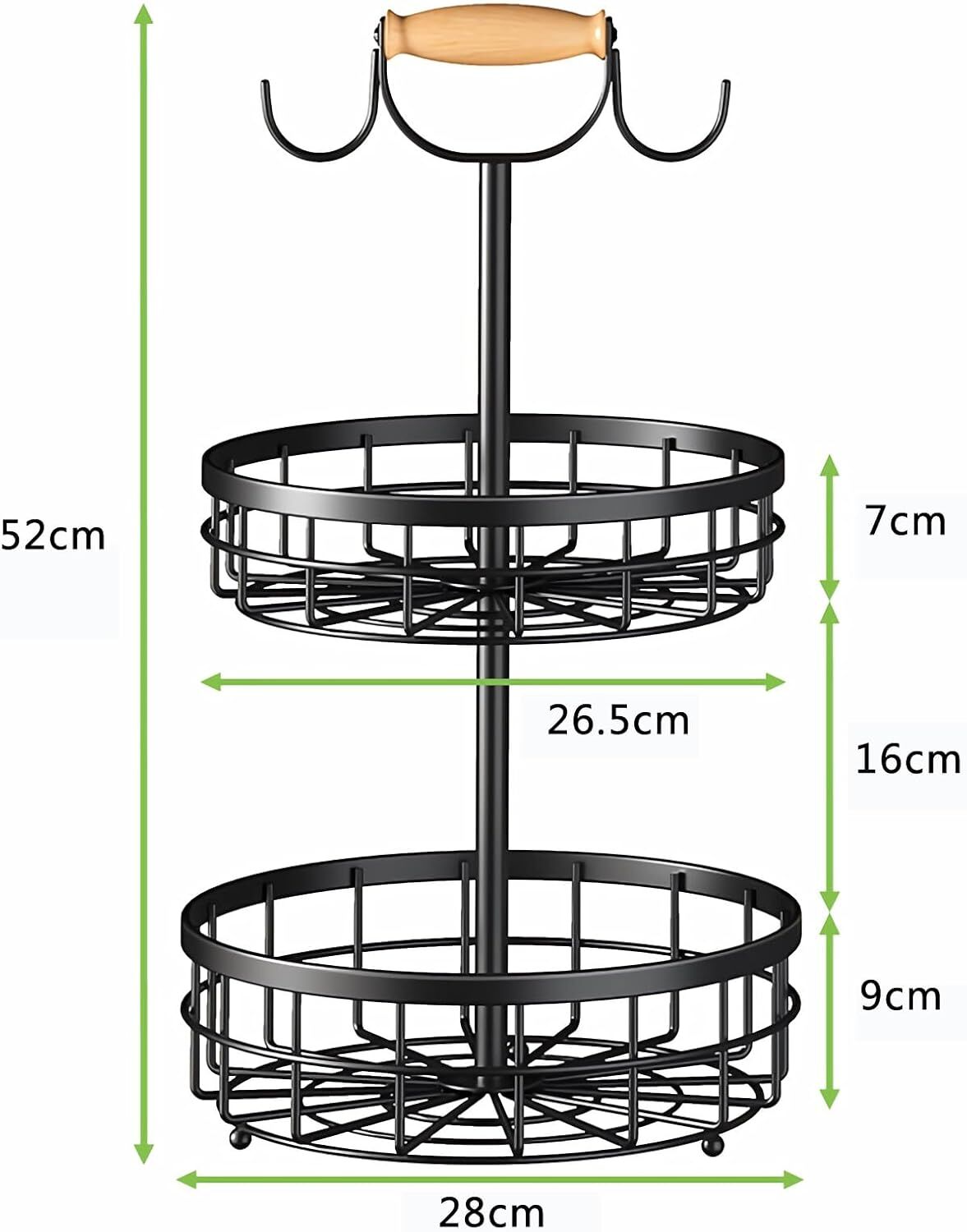 $50.342-Tier Fruit Basket Bowl Storage with Wood Lift Handle and Dual Banana Tree Hanger for Kitchen Countertop