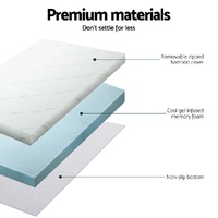 Add that extra bit of comfort to your mattress. An extra 5cm to be precise with our cool gel mattress topper. And the difference is simply wonderful. That's because our topper provides palpable relief to your pressure joints no matter how you sleep, a cooler sleeping surface and not least, individual contouring of your body shape thanks to the memory foam. The memory foam also helps to even body weight distribution, eliminate motion disturbance and dissipate body heat to keep your rest nice and cool. Eco-friendly in every way with its highly breathable bamboo fabric covering, our cool get mattress topper is just the extra that you need to turn your rest and sleep from good to great. Available in Single, King Single, Double, Queen and King sizes.