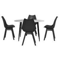 Everyone needs a dining table, and there's no dining table like an Artiss Marble Dining table. The table is an affordable alternative to real marble, made from particle board with a marble finish and sturdy metal legs without sacrificing elegance. Simple and modern, the table instantly makes a statement in your dining room with its minimalist appeal and sleek, sophisticated appearance. The round table features smooth edges for safety while the anti-rust, powder-coated steel legs are sturdy and durable with a weight capacity of up to 90kg. With its practical, industrial-style aesthetic, the dining table will suit most home and décor types and provides plenty of room for a family of four, whether it's dinner time, book club or board game night.