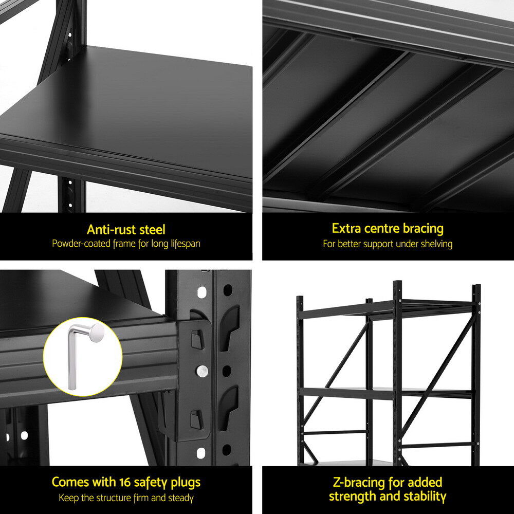 Organise your space with ease using the Giantz Storage Racks, built to handle heavy-duty storage needs. Each shelf level supports an impressive 200kg, making it perfect for tools, equipment, or household items. Crafted from industrial-grade steel with a rust-resistant coated finish, these racks are designed for lasting durability. The Z-bracing and reinforced frame enhance stability, while adjustable shelf height settings provide the flexibility to customise your storage. With the added security of 16 safety plugs, the Giantz Storage Racks are the ultimate solution for efficient and reliable storage in garages, workshops, or sheds.