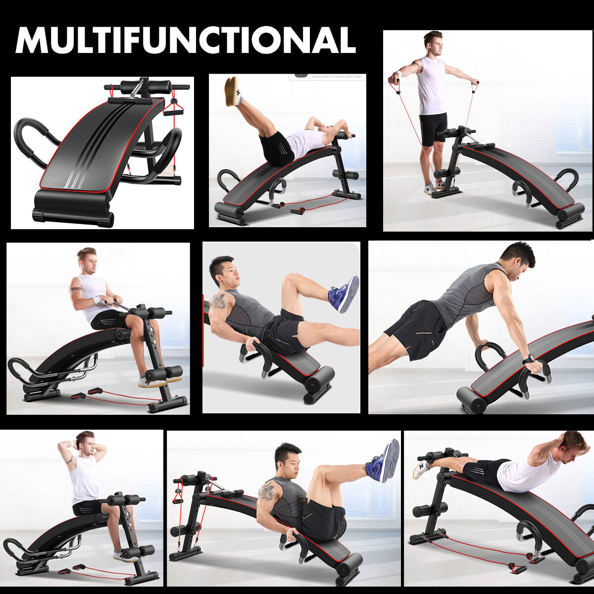 Our foldable multifunctional Sit-up Bench is the ultimate fitness equipment to complete your home fitness workout. The highly versatile and compact workout station not only helps with toning and strengthening your muscles, it also helps improving efficiency of your cardio-vascular system and burning extra calories and reducing fat faster. The intensity of workout can be easily and quickly adjusted by using the pop pin to adjust the angle of the bench. Featuring durable powder-coated steel tube construction, waterproof and oil-resistant PU leather and non-slip feet, the sit-up bench can easily withstand even high-intensity exercises. It also comes with bonus resistance bands to add variety to your workout. And best of all, the bench is fully foldable and portable, and highly convenient for storage.