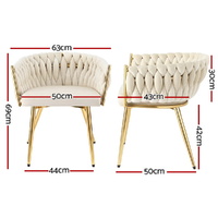 Wine, dine, and entertain guests with our meticulously designed Artiss dining chairs. They make a luxurious addition to any dining space and will make your guests envious of your gorgeous dining ambience. Not just for your dining room, these dining chairs are sure to make a statement in your study room, living room, and dressing room. Their versatility and ultra-modern design make them stand out. Incredibly stylish and sophisticated, our Artiss dining chairs feature inner solid wood construction with plush velvet upholstery and a hand-woven backrest that ensures lasting quality. It comes with solid steel legs with an anti-slip feet pad for ultimate stability and to keep your floors scratch-free. The dining chairs flaunt plush seats made with high-resilience foam that offer incredible comfort and support, and the cushioned back support with comfortable armrests allow you to dine with great comfort. Our dining chairs can hold up to 150kg weight, and their reinforced steel fixings make them super stable and reliable. Our Artiss dining chairs are certainly a big bang for your buck. Bring home this luxurious set of dining chairs without any hesitation.