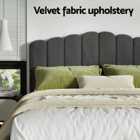 Introducing our elegant Artiss bed frame: upholstered in velvet fabric, featuring a gas lift storage mechanism, wooden frame with slat support, padded headboard, smooth edge finish, and sturdy metal connectors for a blend of style and functionality in your bedroom.