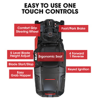 The 6hp OHV air-cooled 4-stroke engine delivers plenty of power. Wide tyres tackle your yard with confidence, thanks to the rear-drive positraction system that ensures superior control.