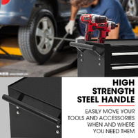 This toolbox features a lower cabinet, which is suitable for bulkier tools. Each drawer is equipped with an EVA mat and it slides effortlessly in and out on smooth ball bearing rails.