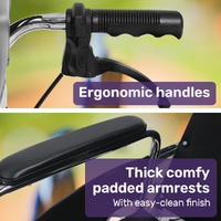$422.21The Equipmed SmartRide Deluxe provides well deserved freedom and confidence. This premium wheelchair has a sturdy steel frame with a stylish chrome finish that can hold passengers of up to 100kg. This premium Equipmed wheelchair can be used as a self-propelled wheelchair or with an attendant. It's designed for easy access onto the wheelchair thanks to swing-away footrests.