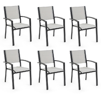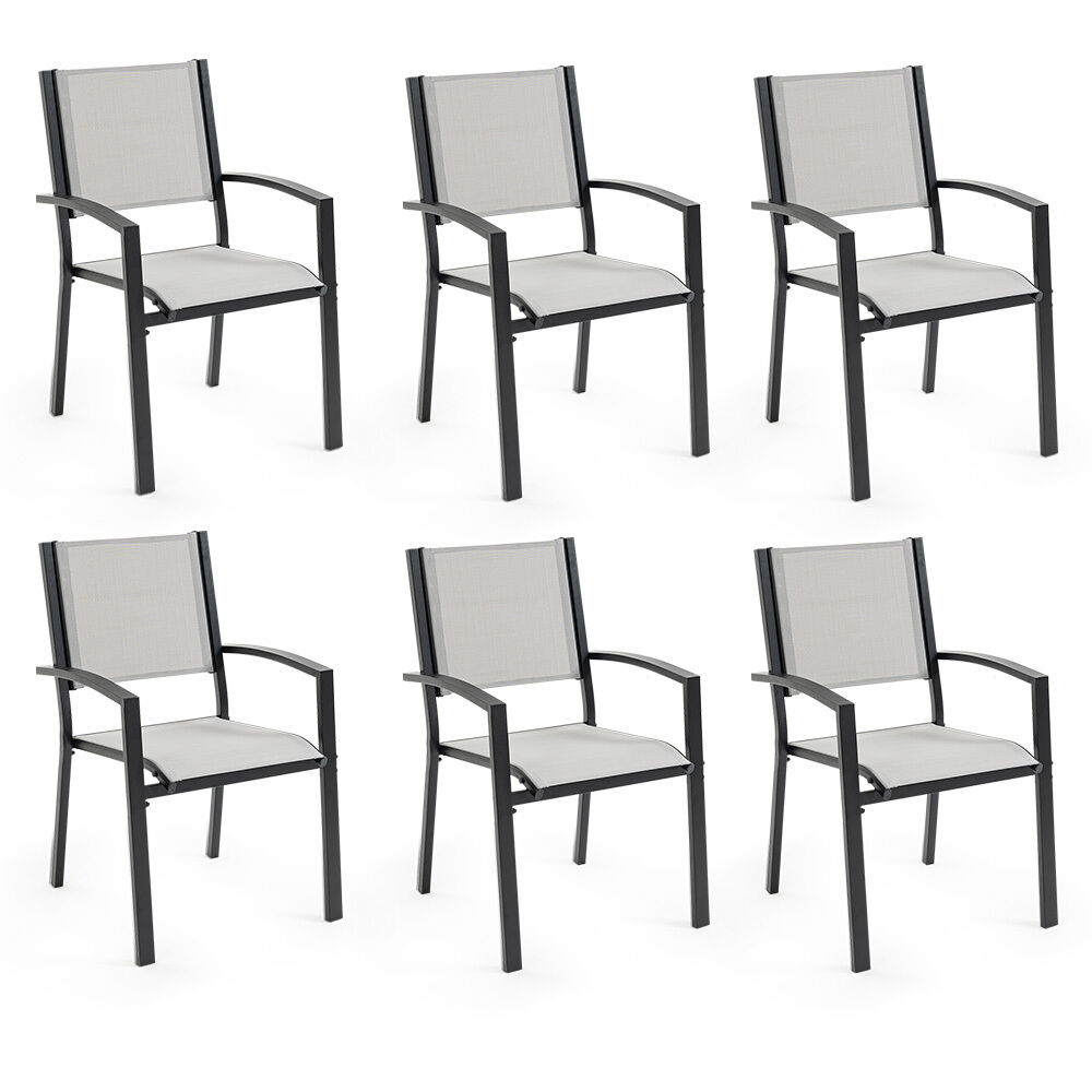 Designed for warm climates, the set features breathable mesh fabric, ensuring well-ventilated comfort, fade resistance, and longevity. The Fortia 6-Piece Outdoor Dining Chair Set has a strong stylish, rust-resistant powder-coated frame and non-marking feet to protect surfaces like tiles or decking.