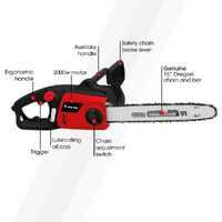 With the inclusion of a genuine OREGON 16' chain and bar, you can approach cutting and pruning tasks with unwavering confidence. The chainsaw simplifies maintenance with its automatic chain lubrication system, ensuring it never runs dry. Additionally, the transparent oil tank allows for straightforward monitoring of the oil level. Notably, it features an ergonomic grip bar and a chain tension wheel that can be adjusted on the fly, eliminating the need for additional tools.