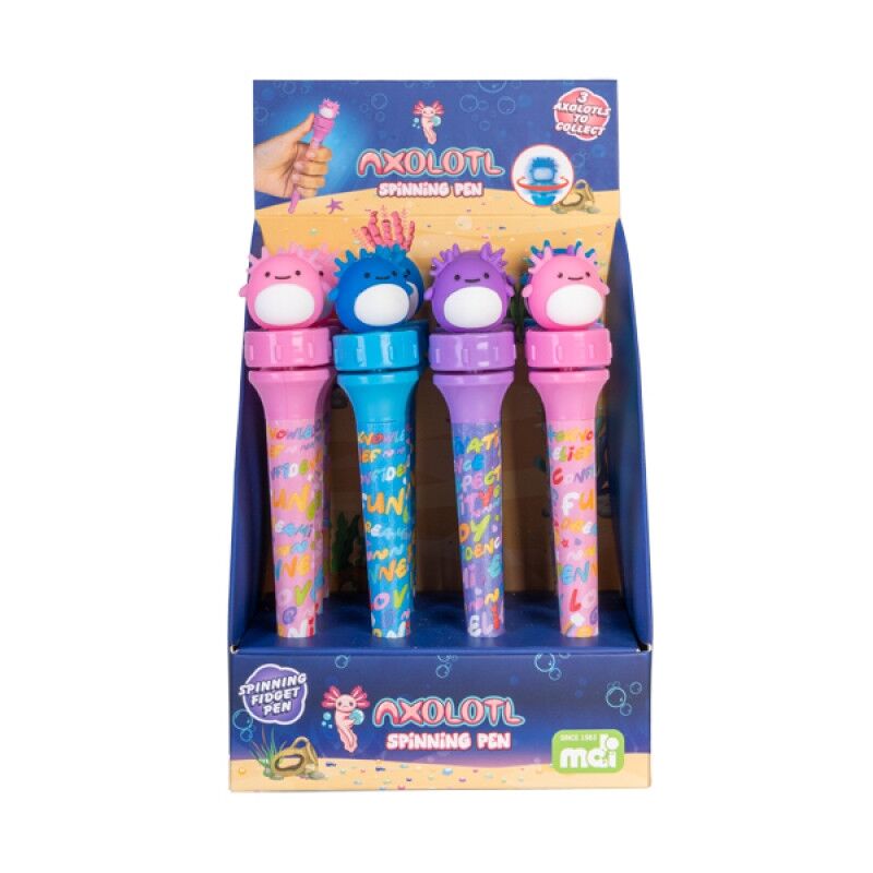Combine work and play with these spinning axolotl pens!