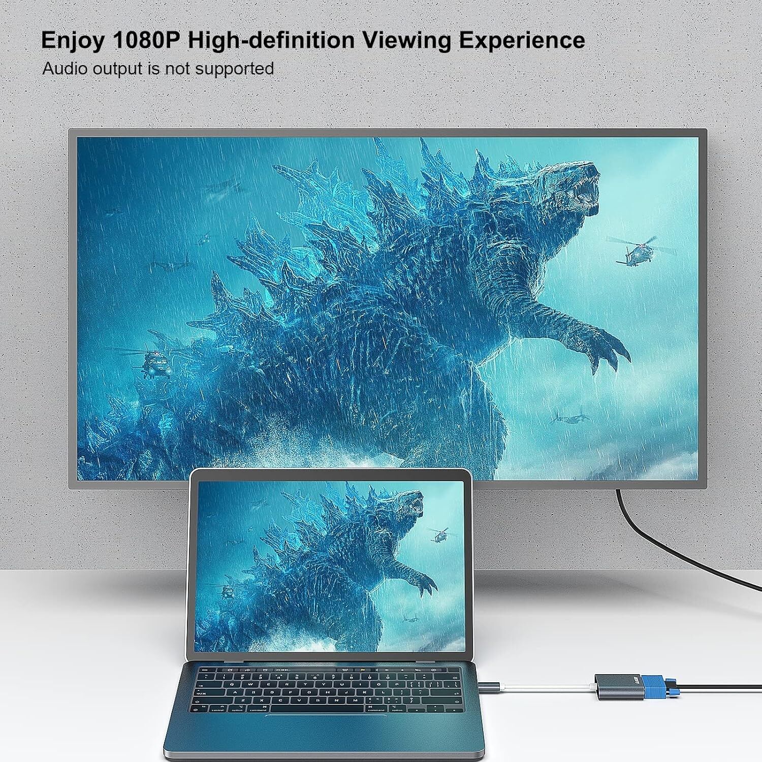 The compact-designed portable Benfei USB-C to VGA adapter connects a computer, desktop, laptop, or other devices with USB-C port to a monitor, projector, HDTV, or other devices with VGA port; Tuck this lightweight gadget into your bag or pocket to do a business presentation with your laptop and projector, or extend your desktop screen to a monitor or TV; A VGA cable is required.