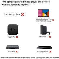 The HDMI-VGA adapter is compatible with computer, pc, desktop, laptop, ultrabook, notebook, Chromebook, Raspberry Pi, Intel Nuc, Roku, PS3, Xbox One, Xbox 360, Wii U, Set Top Box, TV BOX, or other devices with HDMI port; NOT compatible with Blu-ray player and devices with low-power HDMI ports such as SONY PS4, Apple MacBook Pro with Retina Display, Mac mini, and Apple TV