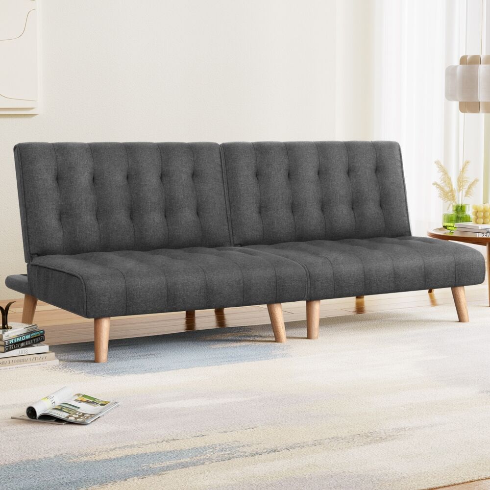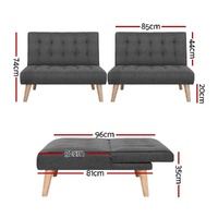 Snuggle up with our versatile 2-seater Artiss Recliner Sofa Bed. Constructed with a wooden frame and thick seat cushioning, our faux linen upholstered sofa is sturdy in every way. The solid rubber wood legs add a very natural touch to the entire ensemble while also providing excellent support. The backrest has three adjustable reclining positions to let you enjoy your leisure at your preferred settings. This allows the sofa to function as a luxurious 2-seater couch with the upright backrest, or as a multi-seater or ottoman with the backrest laid flat. You can even add on additional sofas for a modular setting and to create a larger sofa (or keep extending for a giant-sized one) that can be instantly transformed into a spare bed for unexpected overnight guests when needed.