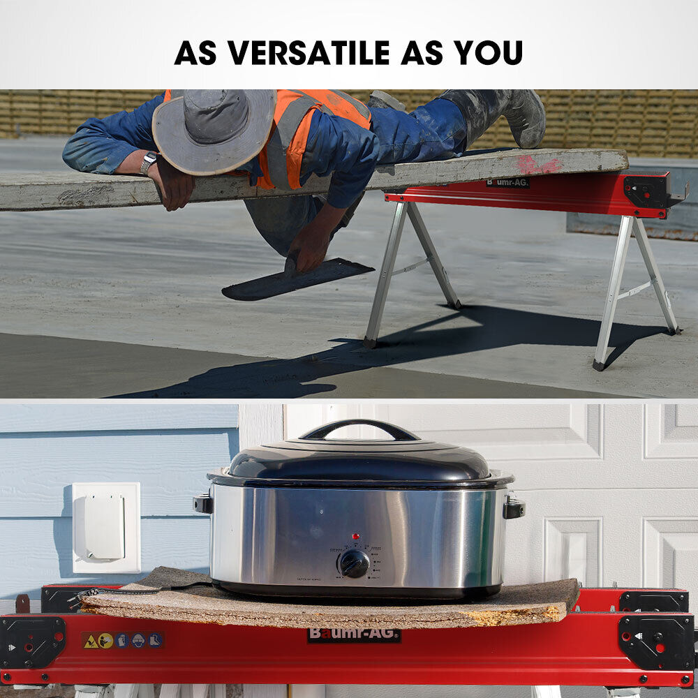 This pair of Baumr AG Heavy-Duty Saw Horses are built from premium galvanised steel. Powder-coated and zinc plated surfaces offer corrosion resistance and help to withstand those day-to-day knocks. These rugged sawhorses have a massive class-leading combined load capacity of up to 1000kg!