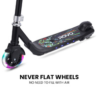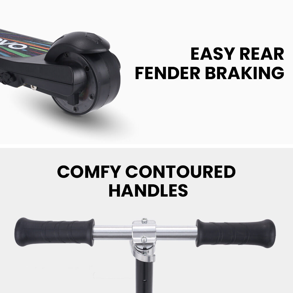 The Rovo Kids WhizKid Electric Scooter combines fun, safety, and style with its sleek design and vibrant multi colour light effects on the deck and front wheels. These cool lights add extra excitement to every ride!