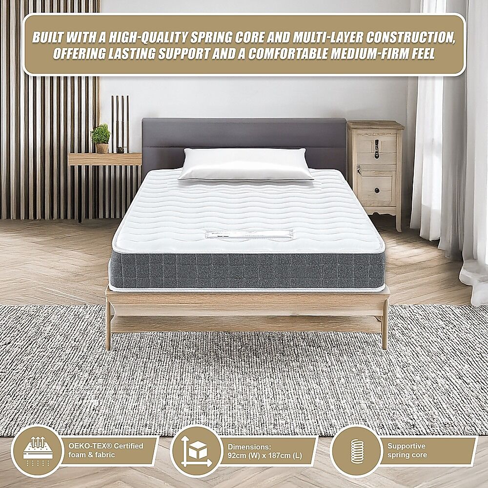 Discover the perfect balance of comfort, support, and value with the Palermo Spring Mattress designed to give you, your family, or your guests the restful sleep they deserve. Whether it's for your main bedroom, guest room, or kids' room, this mattress delivers premium features at a fraction of in-store prices.