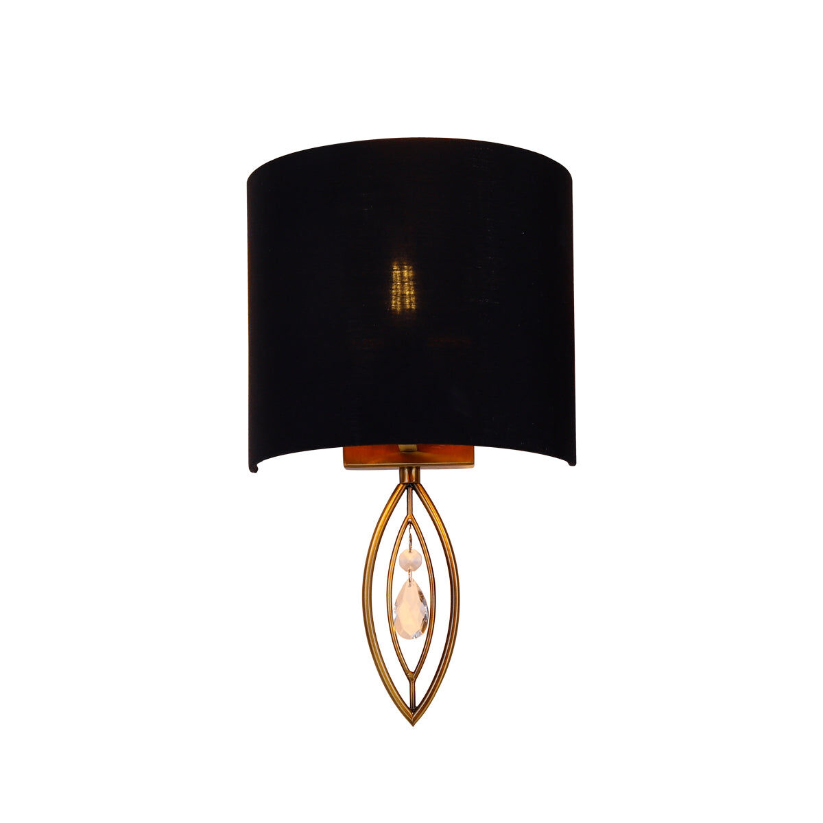 The Greta Range is known for its signature teardrop shape crystal feature that hangs elegantly within its brass structure. Whilst, the black linen fabric shade has a golden lining which amplifies the glow of the light when illuminated.