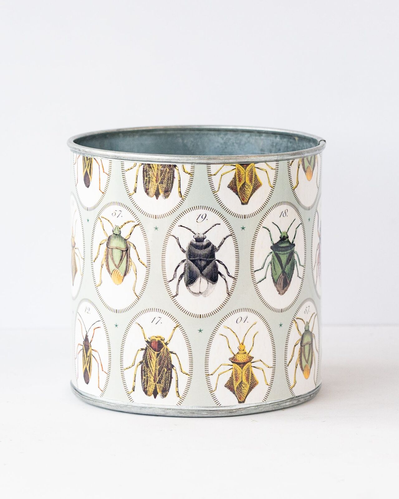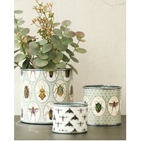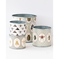 Give your potted plants a new home or sit atop your workbench, desk or kitchen bench for a stylish hold all that you won't want to hideaway. This beautifully designed tin set of "Bugtasia" features delightful, hand drawn garden creatures in a stunning, muted palette of taupe, sage and cream.