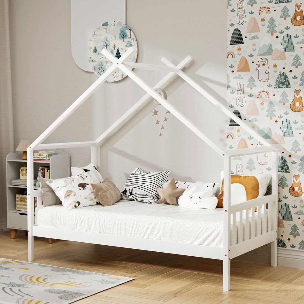 Our multifunctional kids bed frame not only provides a cozy sleeping area but also creates an imaginative world for your child. The charming house design allows kids to decorate their loft bed with flags and fairy lights, sparking creativity during playtime. This montessori bed encourages independent play and sleep.