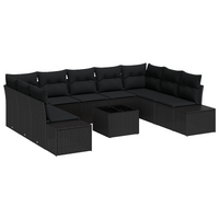 10 Piece Garden Sofa Set with Cushions Beige Poly Rattan