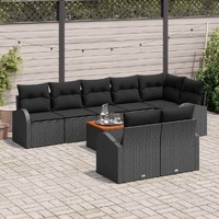 9 Piece Garden Sofa Set with Cushions Black Poly Rattan Acacia