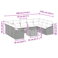 10 Piece Garden Sofa Set with Cushions Black Poly Rattan Acacia