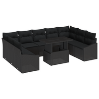 10 Piece Garden Sofa Set with Cushions Black Poly Rattan