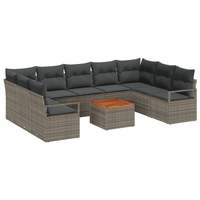 10 Piece Garden Sofa Set with Cushions Grey Poly Rattan Acacia