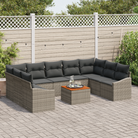 10 Piece Garden Sofa Set with Cushions Grey Poly Rattan Acacia