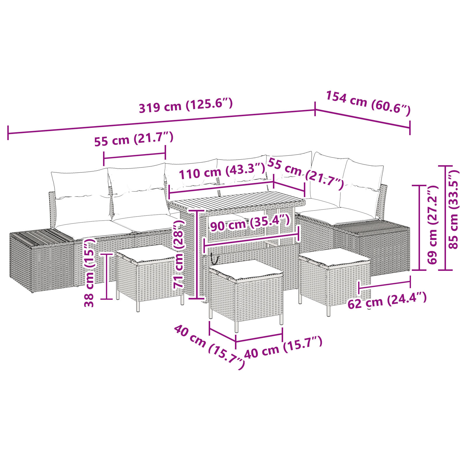 10 Piece Garden Sofa Set with Cushions Black Poly Rattan Acacia