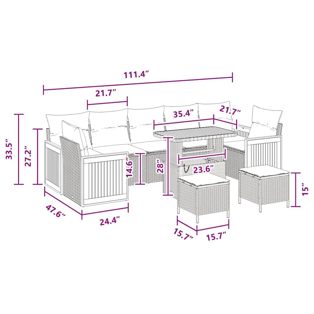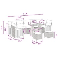 10 Piece Garden Sofa Set with Cushions Black Poly Rattan Acacia