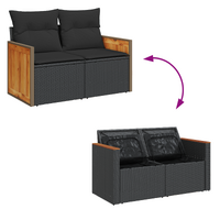 10 Piece Garden Sofa Set with Cushions Black Poly Rattan Acacia