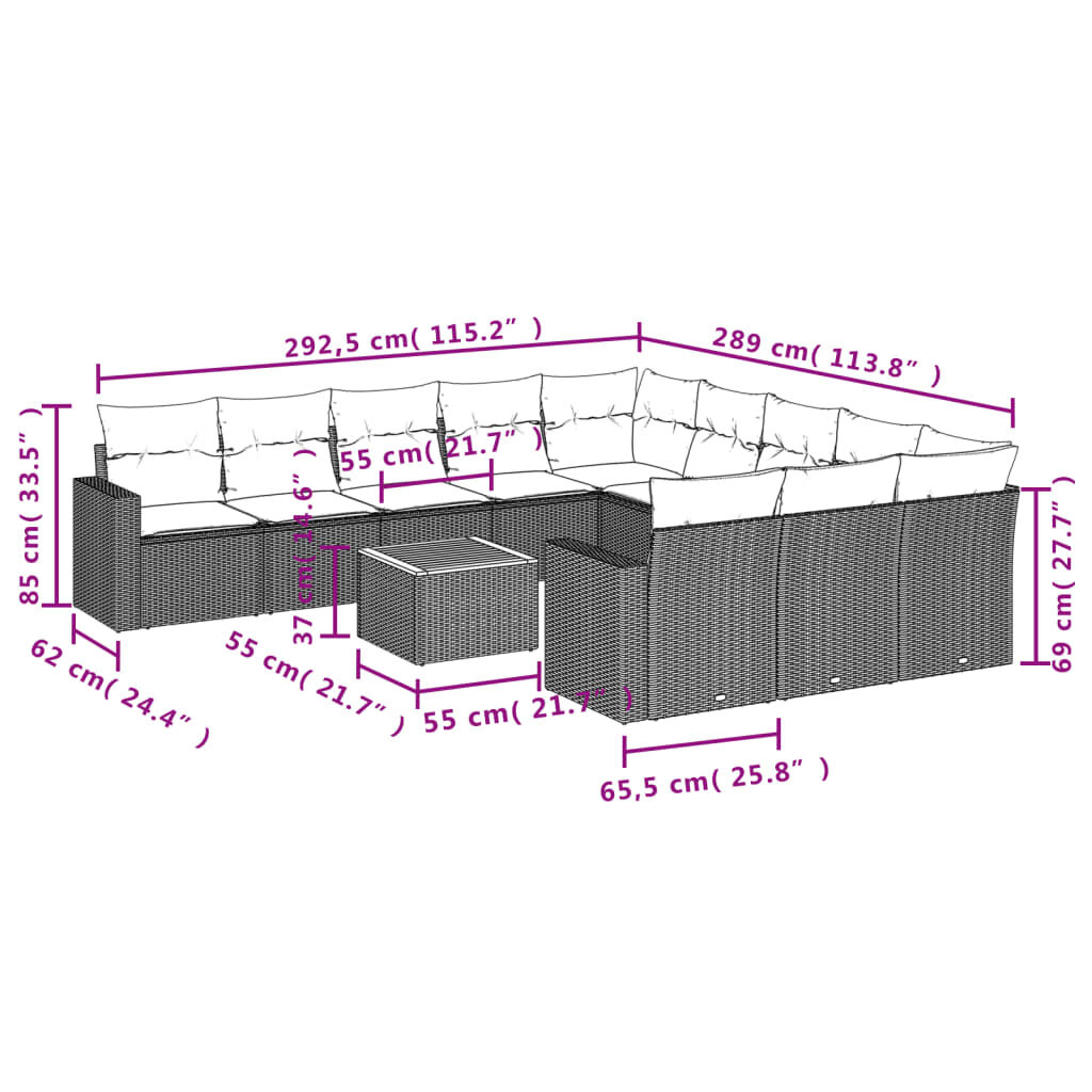 12 Piece Garden Sofa Set with Cushions Black Poly Rattan