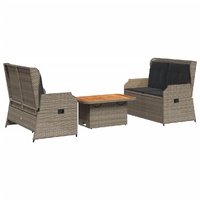 NOW $706.49This garden lounge set is the perfect addition to your backyard, terrace, or patio, providing a comfortable and inviting space for chatting with family and friends or simply relaxing and enjoying the outdoors. Durable material: PE rattan, also known as poly rattan, is a strong, low-maintenance synthetic material that looks like natural rattan. It's lightweight, easy to clean, and commonly used for outdoor furniture due to its durability and weather-resistant properties.Adjustable backrest: You can adjust the backrest to any position by pulling the handle, and quickly return it to its original position.Removable and washable cover: These seat cushions feature removable covers for easy washing and maintenance.Comfortable seat experience: This outdoor furniture, complete with thickly padded cushions, offers a comfortable seating experience.Stable and easy-to-clean tabletop: This garden table has an acacia wood top that is sturdy, durable, and easy to clean with a damp cloth.Robust and stable frame: The powder-coated steel frame is strong, stable, durable, and resistant to corrosion and harsh weather, ensuring long-lasting performance. Good to know:To make sure your outdoor furniture stays beautiful, we recommend protecting it with a waterproof cover.