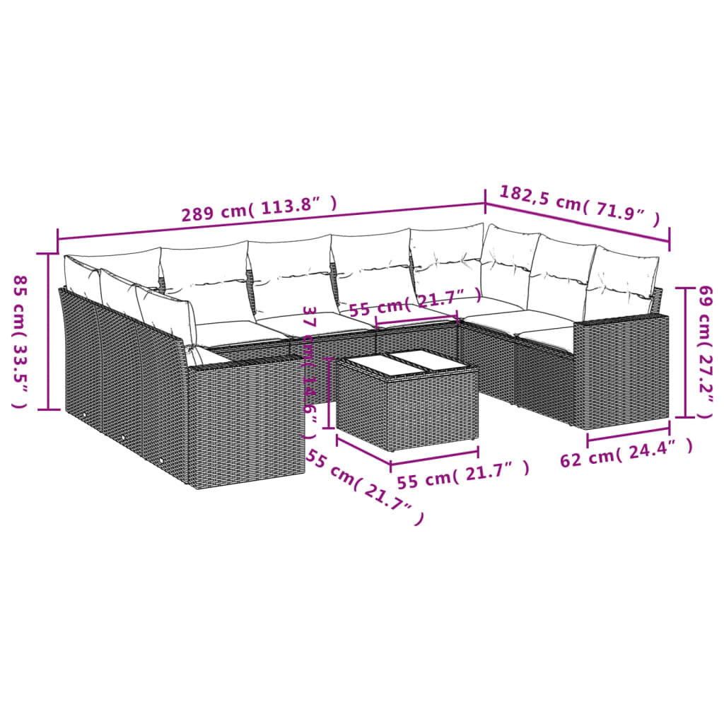 10 Piece Garden Sofa Set with Cushions Black Poly Rattan
