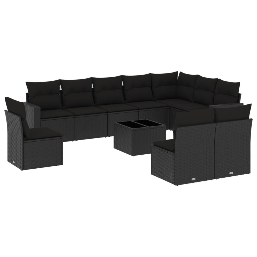 11 Piece Garden Sofa Set with Cushions Black Poly Rattan