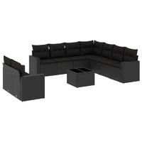 10 Piece Garden Sofa Set with Cushions Black Poly Rattan