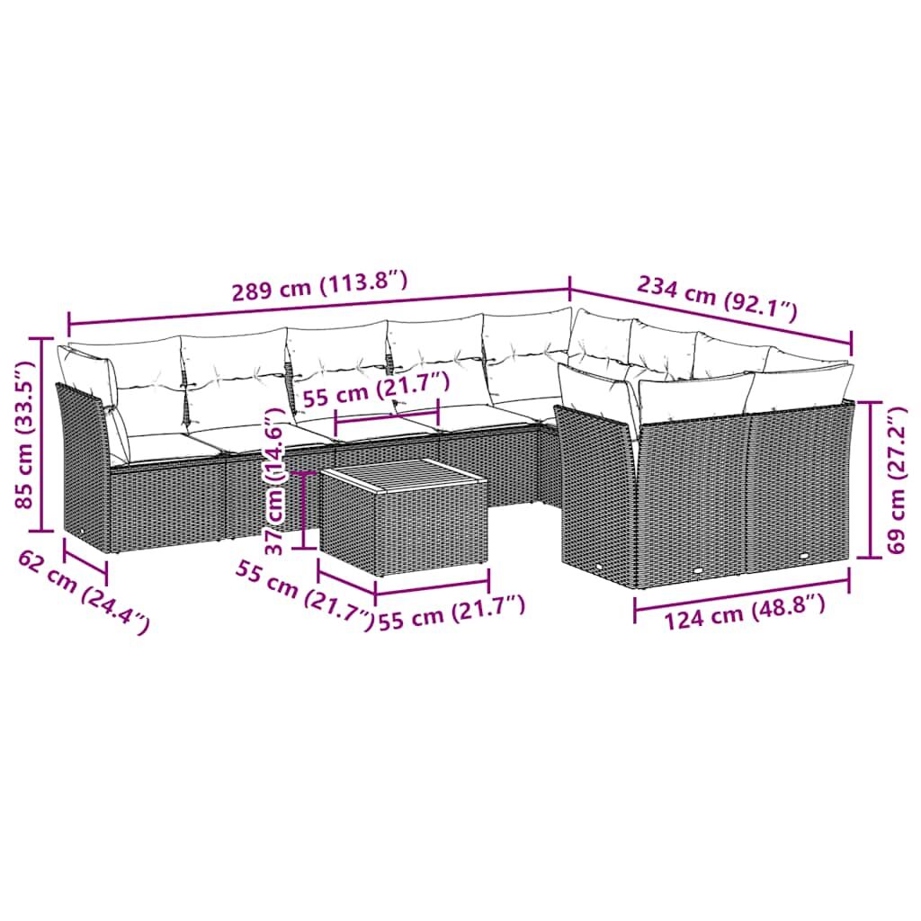 10 Piece Garden Sofa Set with Cushions Black Poly Rattan