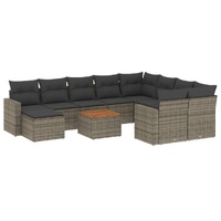 11 Piece Garden Sofa Set with Cushions Grey Poly Rattan