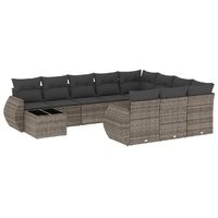 11 Piece Garden Sofa Set with Cushions Grey Poly Rattan