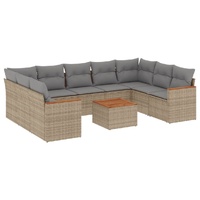 10 Piece Garden Sofa Set with Cushions Mix Beige Poly Rattan
