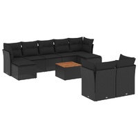 10 Piece Garden Sofa Set with Cushions Black Poly Rattan