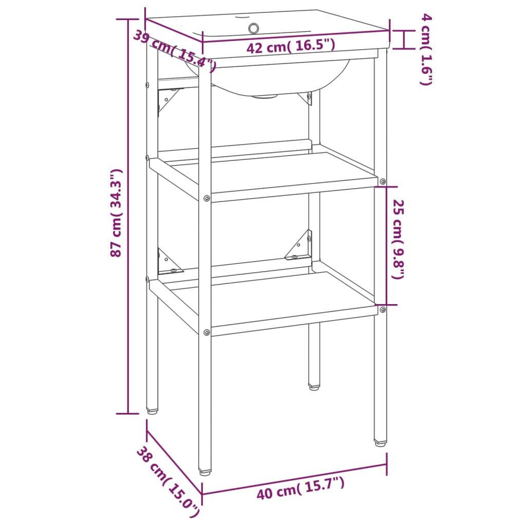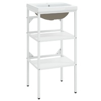 Bathroom Washbasin Frame with Built-in Basin White Iron