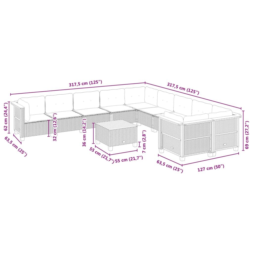 11 Piece Garden Sofa Set with Cushions Black Poly Rattan