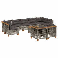 10 Piece Garden Sofa Set with Cushions Grey Poly Rattan