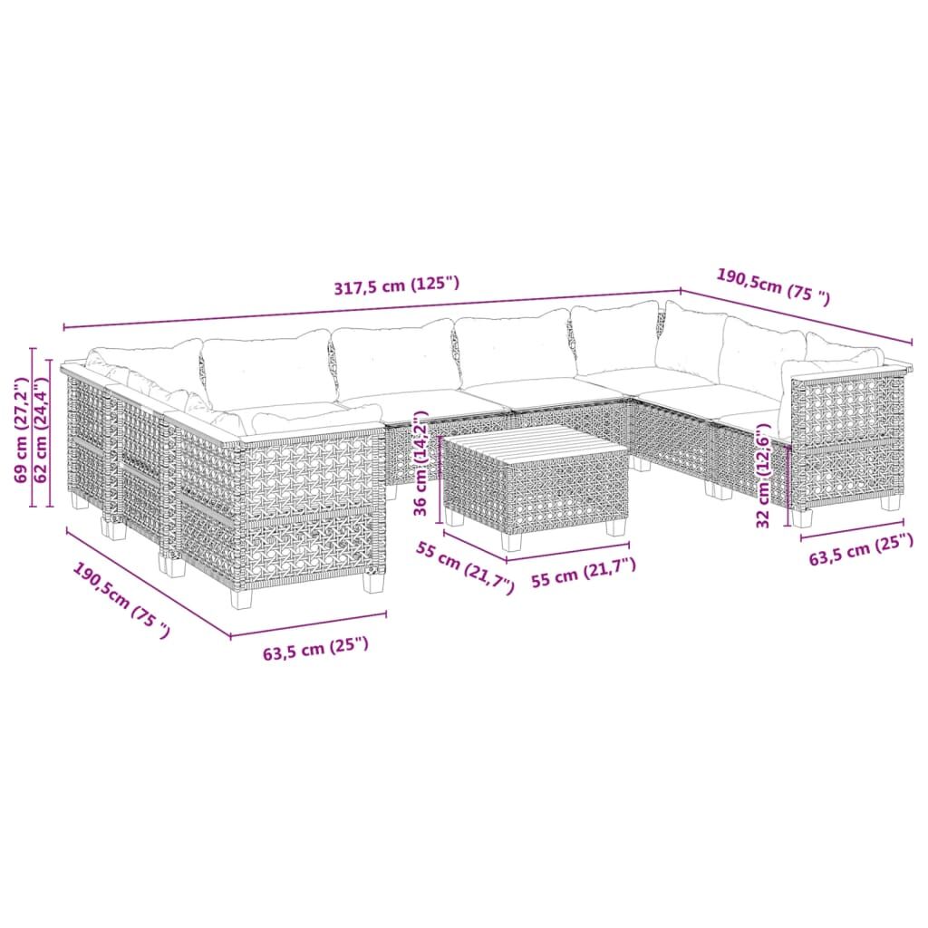 10 Piece Garden Sofa Set with Cushions Black Poly Rattan