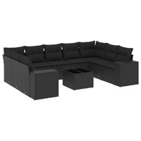 10 Piece Garden Sofa Set with Cushions Black Poly Rattan