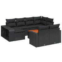 11 Piece Garden Sofa Set with Cushions Black Poly Rattan