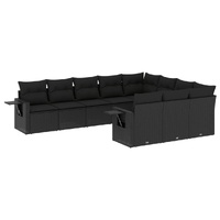 10 Piece Garden Sofa Set with Cushions Black Poly Rattan