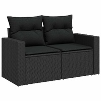 11 Piece Garden Sofa Set with Cushions Black Poly Rattan