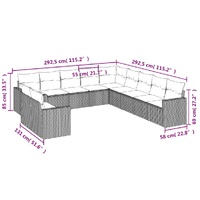 11 Piece Garden Sofa Set with Cushions Grey Poly Rattan
